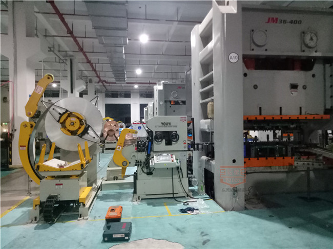 →800高強板三合一整平送料機沖壓自動化生產線客戶現場