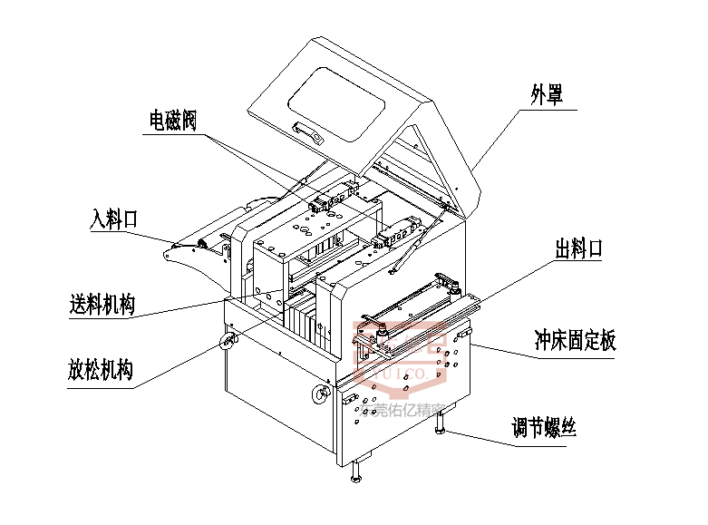 夾持式送料機由夾板夾持料帶,按所設定的送料長度做往復運動從而實現料帶的送料。本機構采用夾料帶的邊緣的方式,能有效的料帶表面不能刮傷,移動部分采用優質直線導軌及滾珠絲桿,保證產品的品質。