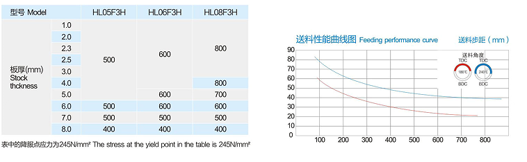 伺服送料系統搭載日本安川伺服馬達與閉環控制結構,送料精度可達±0.15mm(500mm以內),送料速度最高可達18m/min,確保厚板送料過程平穩、精準。